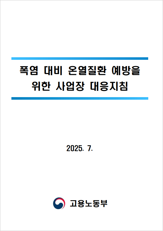 고용노동부 정책자료실에 [폭염 대비 온열질환 예방을 위한 사업장 대응지침]이 게시 되었습니다.