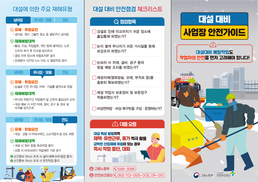 본 저작물은 안전보건공단에서 2024년 작성하여 공공누리 제4유형으로 개방한 '대설 대비 사업장 안전가이드'을 이용하였으며,