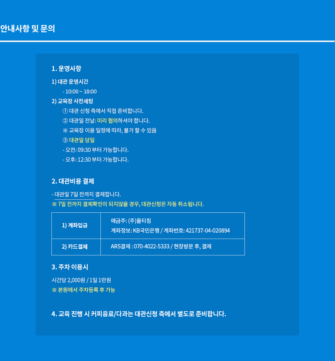 강의실 대관 빠른 견적문의